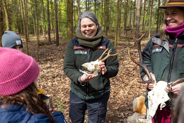 Erkunde die vielfältigen Tätigkeiten einer Försterin, von Forstwirtinnen und Forstwirten und waldpädagogischen Fachkräften für den Berliner Erholungswald.