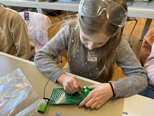 Du baust ein einfaches elektronisches Geschicklichkeitsspiel. Dabei lernst du spielerisch die Grundlagen der Elektronik kennen und sammelst erste Erfahrungen im Löten. Im Mittelpunkt stehen das praktische Arbeiten, der Spaß am Ausprobieren und ein erster Einblick in technische Studienrichtungen.