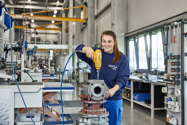 Am Girls'Day erhältst du die Möglichkeit in die Ausbildungsberufe zur Industrie- und Zerspanungsmechanikerin reinzuschnuppern. Zerspanungsmechaniker*innen sind bei uns für die Fertigung einzelner Bauteile zuständig, während Industriemechaniker*innen die verschiedenen Bauteile und Komponenten zu einer Pumpe zusammenbauen.