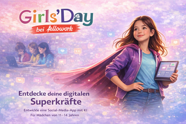 Hast du dich schon einmal gefragt, wie Apps wie Instagram oder TikTok entstehen? 🤔 Und welche Rolle Künstliche Intelligenz dabei spielt? Beim Girls'Day bei fellowork 2026 bekommst du die Chance, genau das herauszufinden! 🎉 Gemeinsam mit anderen Mädchen tauchst du für einen Tag in die spannende Welt von IT, Social Media und KI ein – und arbeitest an einer echten App-Idee. 💜