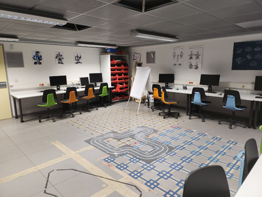 Im LegoLab möchten wir Schülerinnen ab Klasse 5 für das Fach Informatik begeistern. Auf einer Fläche von ca. 25 m2 bietet das LegoLab Zugang zu einem Erlebnisparcours für Lego Roboter.