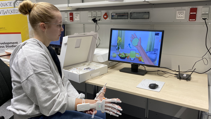 Zuerst lernst Du im digitalen Therapielabor, wie man mithilfe von verschiedenen Spielen die Hirnaktivität verbessern kann. Dabei kommt ein Reaktionsspiel für das visuell/auditiv/haptisch kognitiv motorische Training mit dem Arduino (LED, Buzzer, Vibrationsmotor) und Taster zum Einsatz. Außerdem kannst Du den sogenannten Skillcourt und den Cognition Trainer kennenlernen.