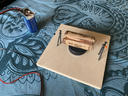 mit einfachen Hifsmitteln wie z.B. einem Korken, Kupferlackdraht, einer Batterie und einem Magneten werden wir einen Elektromotor basteln.