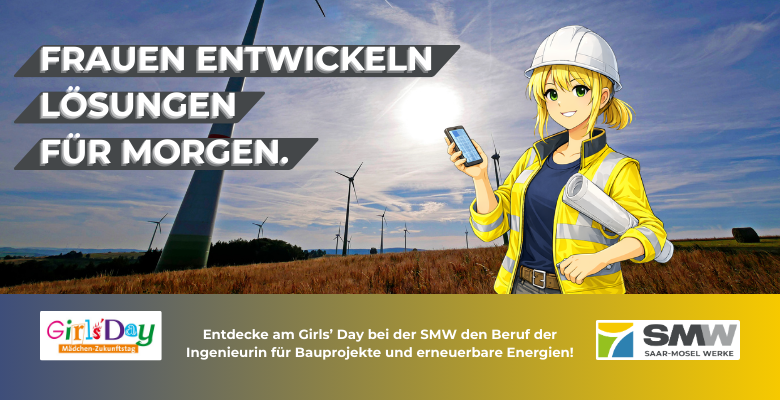 Über uns: Die Saar-Mosel Werke Konz AöR ist seit vielen Jahren ein zuverlässiger Partner für die Versorgung von Haushalten und Betrieben in der Verbandsgemeinde Konz. Unsere Arbeit ist wichtig für den Alltag, von Trinkwasser und Abwasser über Energie bis hin zum Schwimmbadbetrieb. Am Girls’Day kannst du bei uns hinter die Kulissen schauen und technische Berufe kennenlernen, mit denen wir unsere Region nachhaltig und zukunftsfähig gestalten.